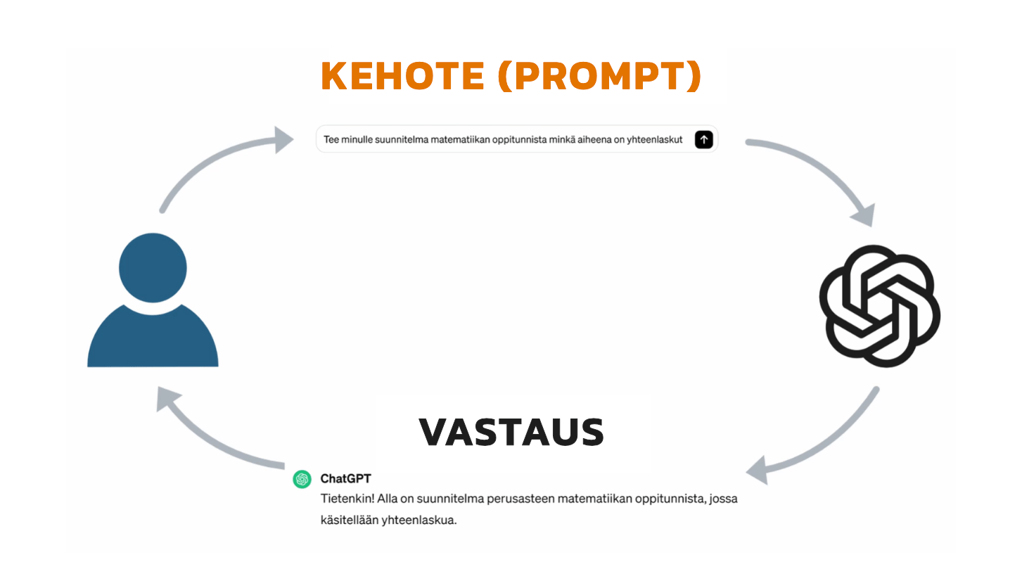 Kehote (tai englanniksi prompt) on se kysymys, pyyntö tai muu ohjeistus minkä perusteella ChatGPT vastaa sinulle.