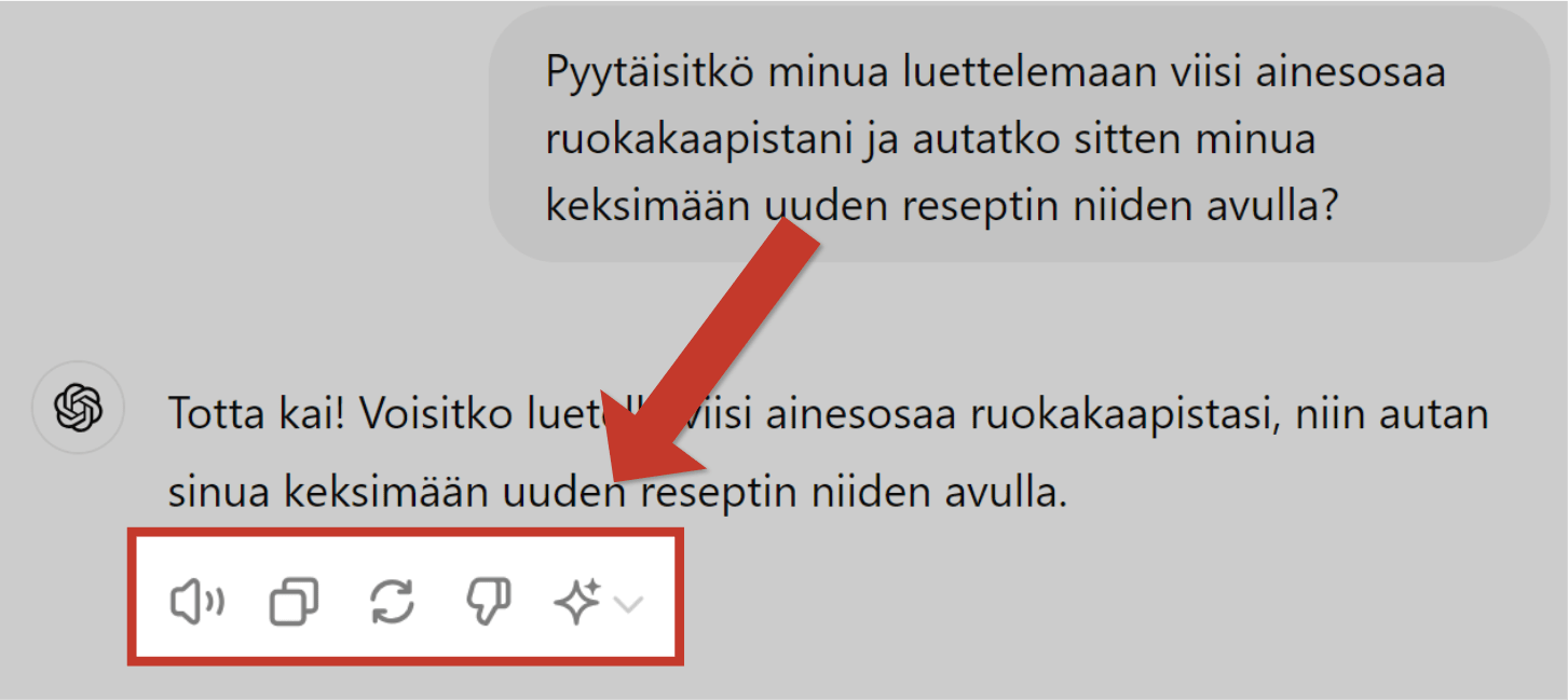 Jos ensimmäinen versio ei vielä vakuuta, niin voit myös kokeilla erilaisia lyhyitä kehotteita muuntamaan tekstiä mieleiseksi.