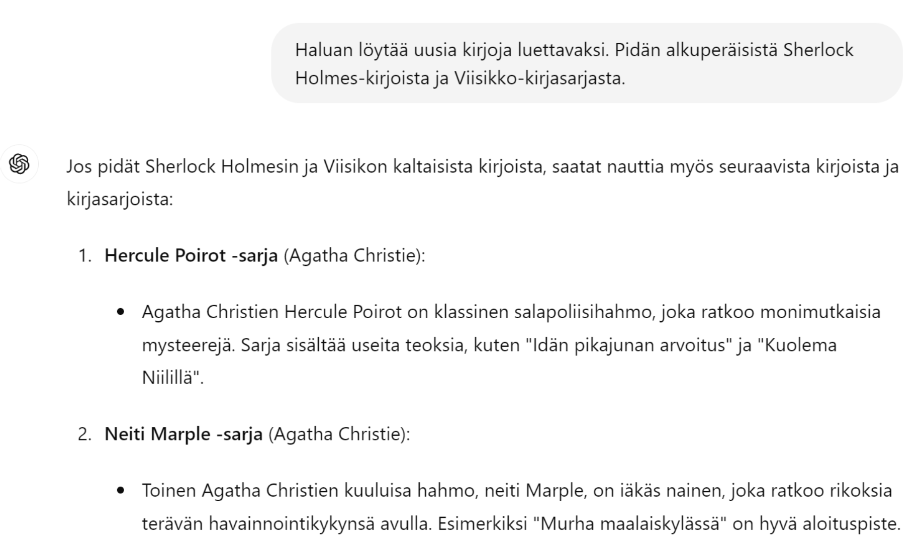 Tämä on aivan pätevä tapa käyttää ChatGPT:tä, ja tekee siitä mukavan ideointiapurin joka tilanteeseen.
