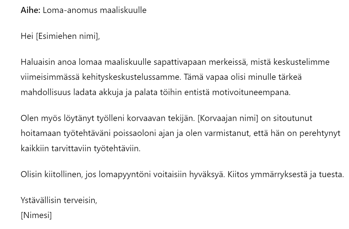 Sähköpostien kirjoittaminen ei ole mieluista juuri kenellekään, joten tällainen lähes valmis viesti voi olla mukavaa ajansäästöä.