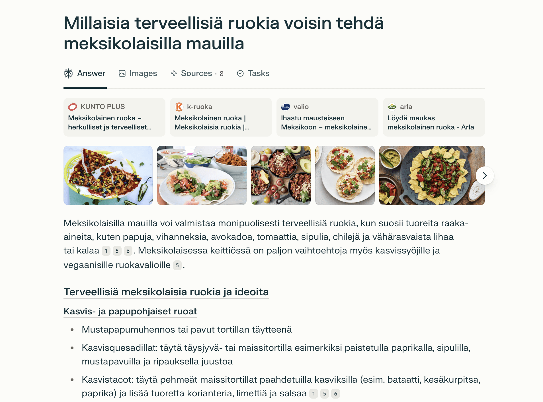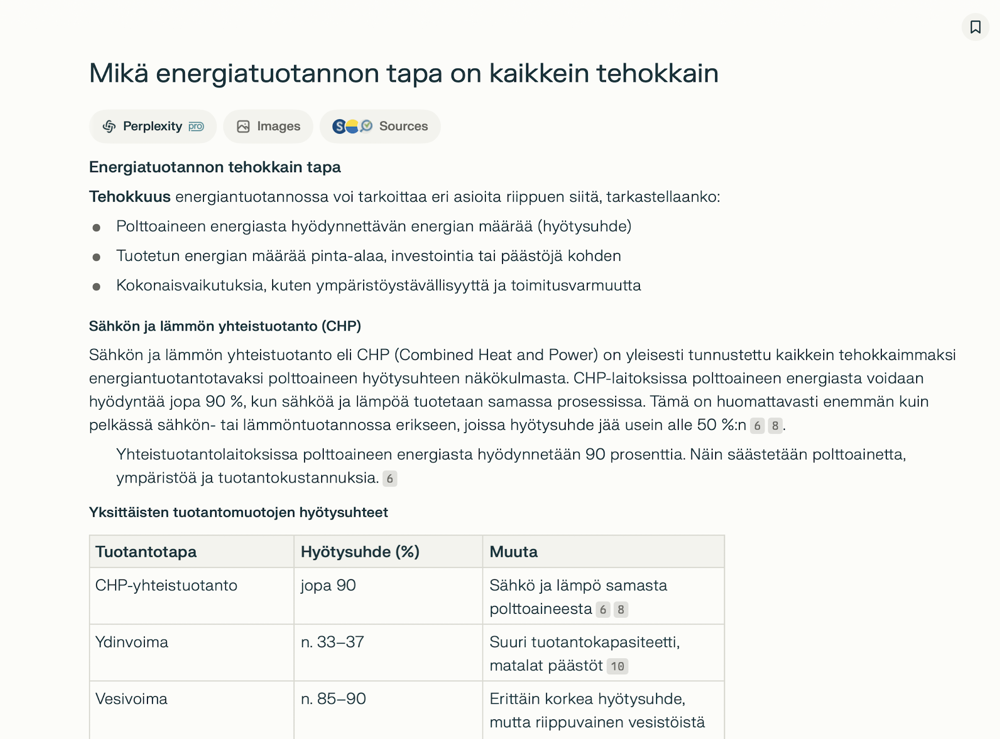 - Se hakee aina tuoreimman tiedon netistä, toisin kuin esimerkiksi ChatGPT, mikä käyttää usein tekoälymallin vanhentunutta tietämystä